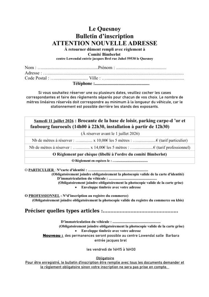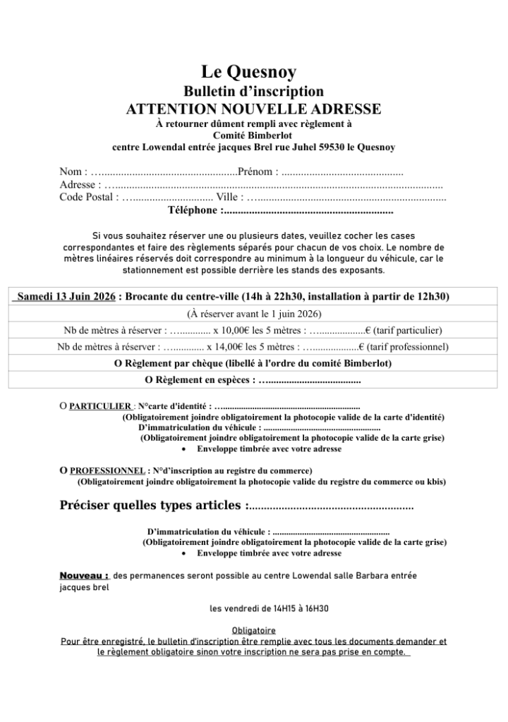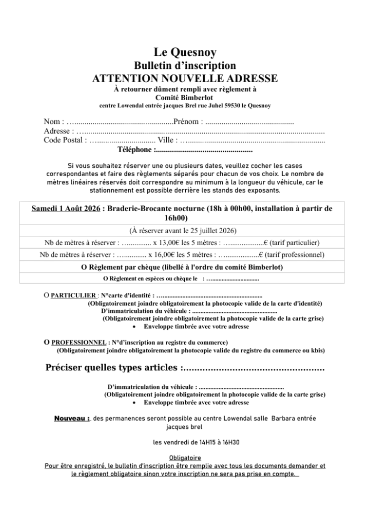 Bulletin d'inscription 2026